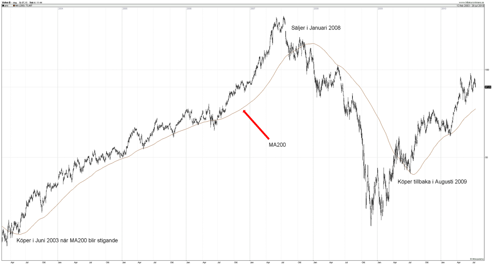• Jag ska äga aktier i Volvo så länge den primära trenden (MA200) är stigande.